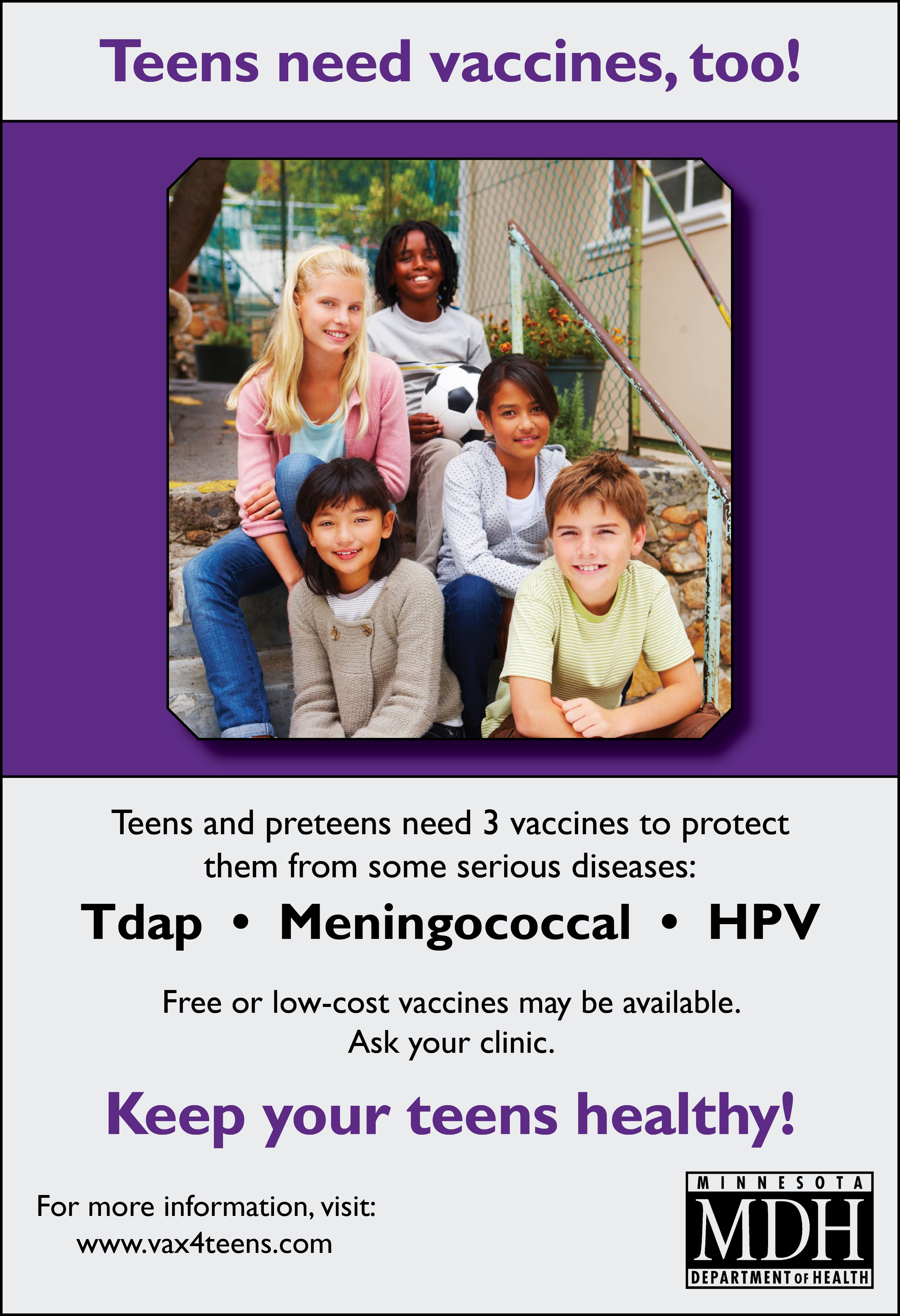 Visit www.vax4teens.com for more information on keeping your teen healthy and happy.