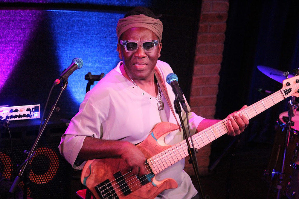 Watching Cameroonian Bona and his band play was equally as exciting as watching a sporting event. There was constant communication—a smile, a raised eyebrow, a shoulder shrug—between Bona on electric bass and Jesus Pupo on two sets of keys, a grand piano and an electronic keyboard. Their playing was dynamic and engaging.