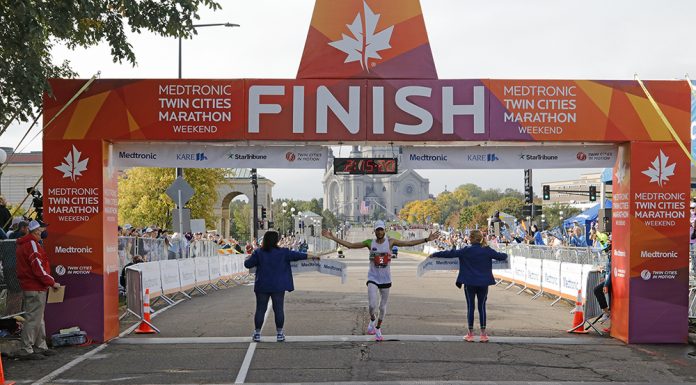 Mohamed Hrezi of Philadelphia won the Twin Cities Marathon men’s title with a time of 2 hours, 15 minutes, 22 seconds while Naomi Fulton from Hartland, Wisconsin took home the women’s title with a time of 2 hours, 45 minutes, 57 seconds.